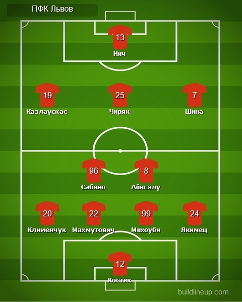 «Львов»: Орест, Клименчук (Кравчук, 70), Михоби, Махмутович, Якимец, Сабино, Айнсалу (Фелипе, 85), Чирьяк (Эрнест, 70), Шина, Казлаускас (Кошман, 80), Нич.