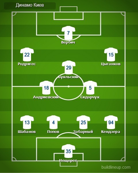 «Динамо»: Руслан Нещерет, Артем Шабанов, Илья Забарный, Денис Попов, Томаш Кендзера, Сергей Сидорчук, Aлександр Андриевский, Виталий Буяльский, Жерсон Родригес (Назарий Русин, 70), Беньямин Вербич (Карлос Де Пена, 62), Виктор Цыганков