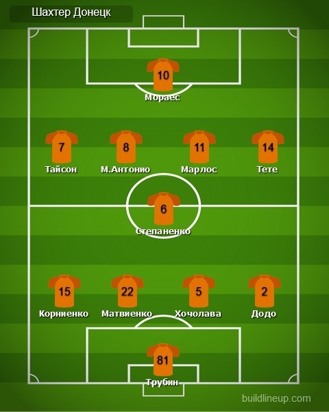 «Шахтер»: Анатолий Трубин, Додо, Николай Матвиенко, Давид Хочолава, Виктор Корниенко (Маркиньос Сиприано, 50), Тарас Степаненко, Маркос Антонио (Алан Патрик, 70), Ромеро Марлос (Виктор Коваленко, 70), Тете, Тайсон (Манор Соломон, 52), Жуниор Мораес (Фернандо, 70)