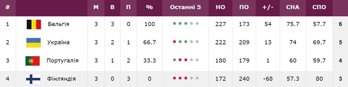 Возглавляет группу Бельгия, которая также 12 ноября победила Португалию - 59:49. У бельгиек три победы в трех матчах.