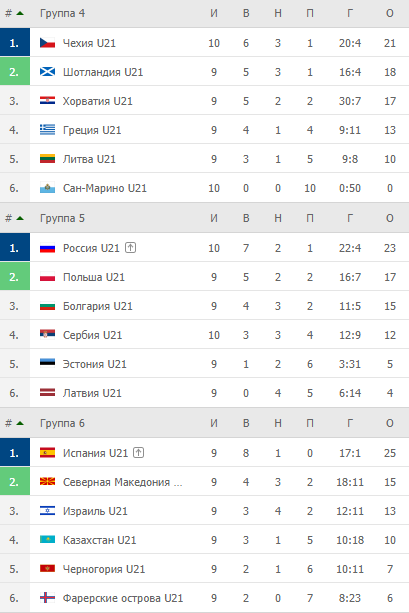 - Испания U21 – Фарерские острова U21 – 2:0