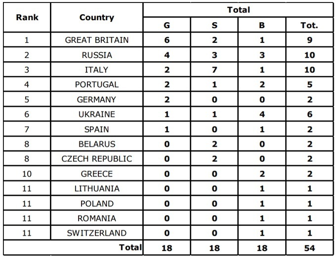 Для Украины это уже шестая медаль на нынешнем чемпионате Европы (1-1-4). В медальном зачете Украина поднялась на шестое место: