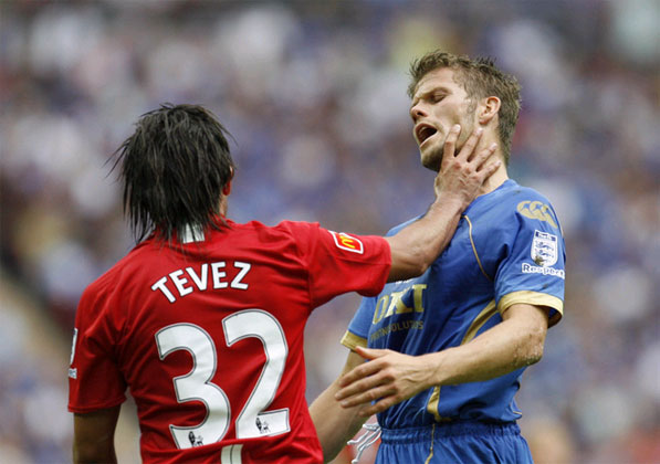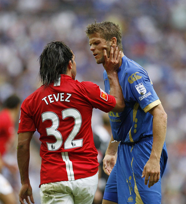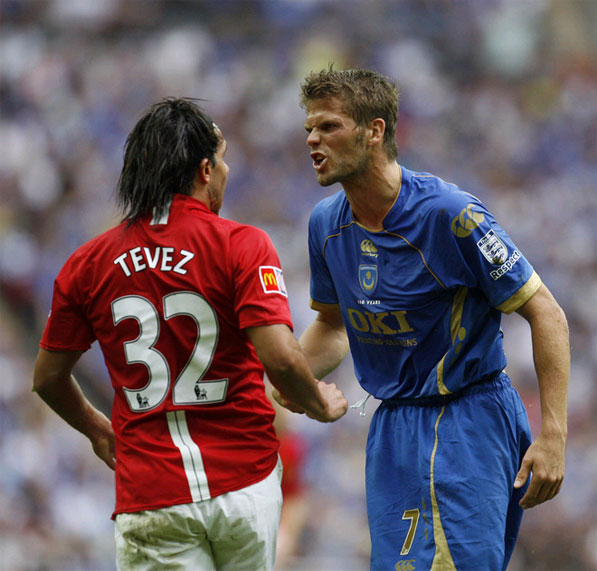 Уголовники зрения лишают, - впору кричать игроку Портсмута Херманну Хрейдарссону, хотя у Карлоса Тевеса есть причины быть недовольными. Он чуть не заработал пенальти на исландце...