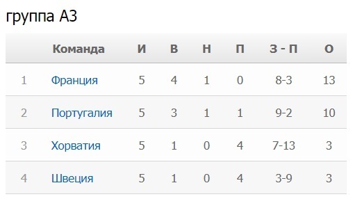 До пятого тура явными фаворитами на спасительное третье место были хорваты, но они проиграли шведам на выезде. Любопытно, что очные встречи между аутсайдерами группы завершились с одинаковым счетом (домашние победы 2:1). Это означает, что в случае равенства очков после шестого тура будут считаться дополнительные показатели. Следующим по списку идет общая разница мячей во всех матчах группового этапа, на данный момент здесь равенство (по -6). Но по количеству забитых Хорватия все же пока впереди (7 против 3).