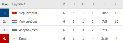 В третьей по силе лиге Черногория разгромила Кипр (4:0) и повышается в классе.