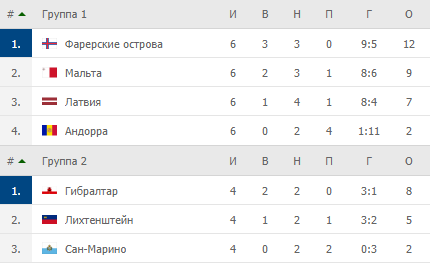 Турнирные таблицы Лиги наций