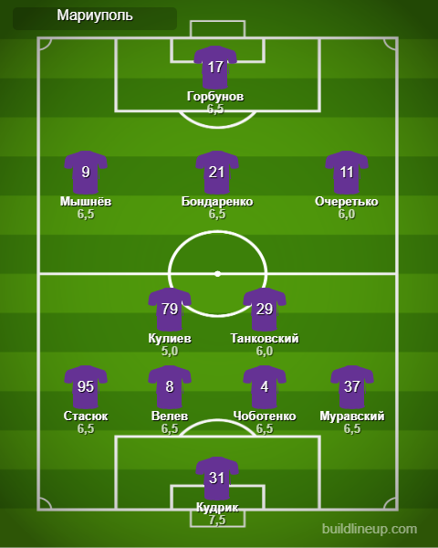 «Мариуполь»: Кудрик - Стасюк, Чоботенко, Муравский, Велев - Танковский (Доброхотов, 75), Кулиев (Петерман, 46), Мышнёв, Очеретько (Кожевников, 78), Бондаренко - Горбунов (Байдал, 88).