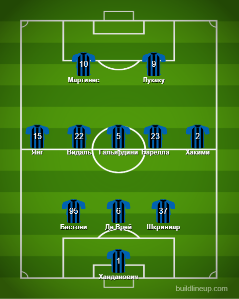 «Интер»: Ханданович, Шкриниар, Де Врей, Бастони (Д'Амброзио, 46), Хакими (Санчес, 64), Барелла, Гальярдини (Сенси, 78), Видаль, Янг, Лукаку (Эриксен, 86), Мартинес (Перишич, 46).
