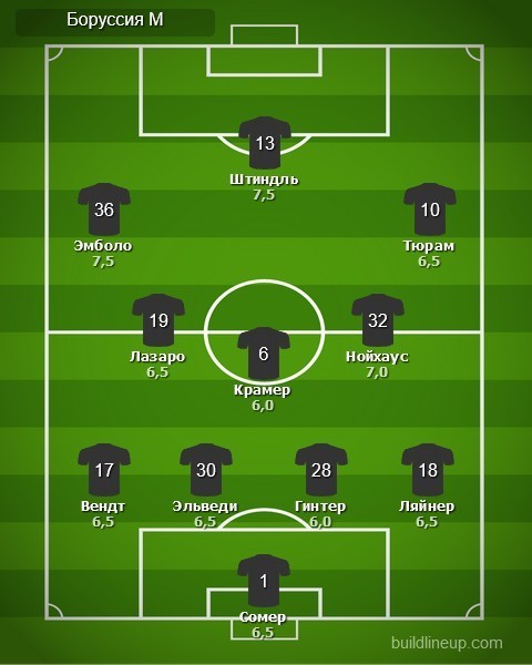 Замены «Боруссии» М: Патрик Херман – 6,0; Денис Закария – 5,5; Алассан Плеа – 5,5; Ласло Бенеш – б/о, Ибраима Траоре – б/о.