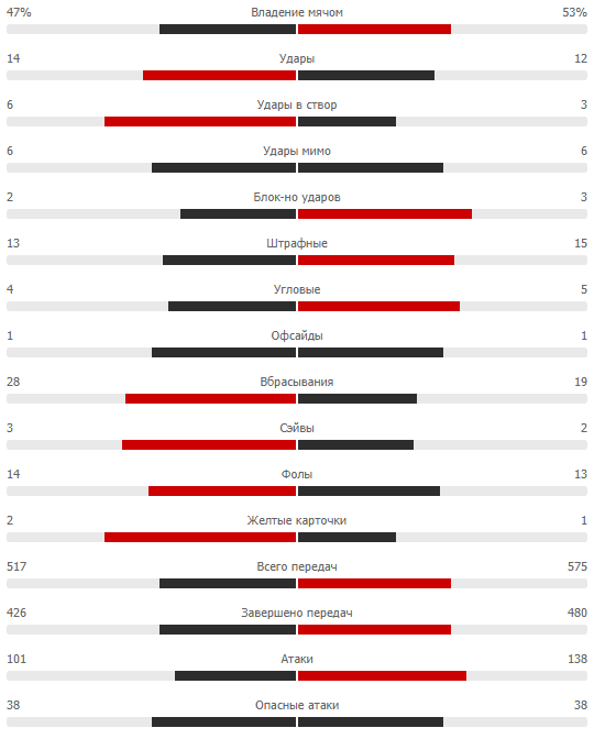 Команда Луиша Каштру выиграла у соперника по владению мячом (53% против 47%). Немецкая команда нанесла больше ударов по воротам (14 против 12), в створ (6–3).