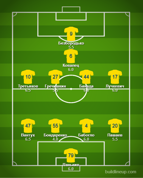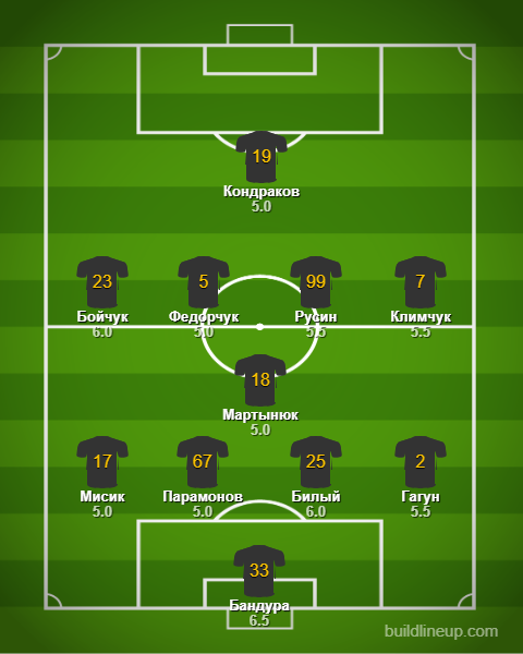 Запас: Билык, Грицук, Довгий, Дубра, Стецков, Устименко.