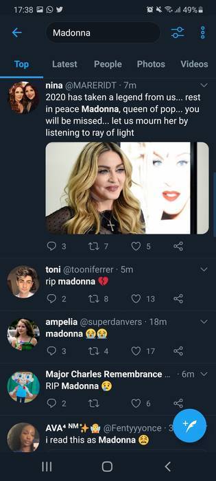В Twitter опубликовано немало сообщений, где бестолковые и невнимательные фанаты прощаются с 62-летней певицей. Уйма твитов содержит текст наподобие: «2020-й забрал у нас легенду: RIP, Мадонна».