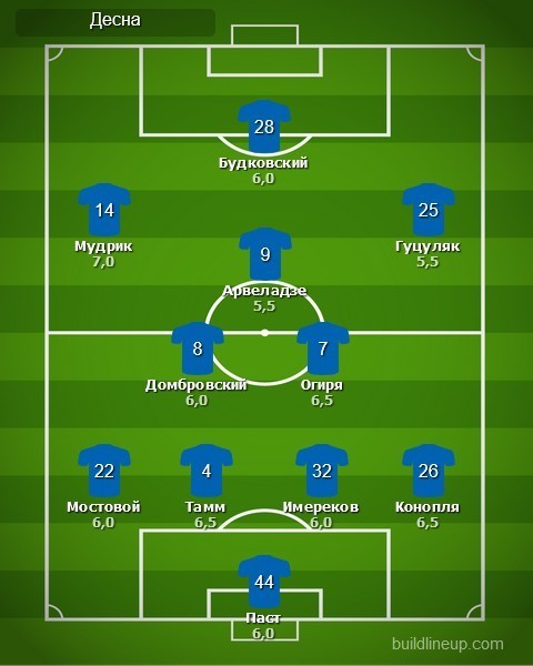 94 мин. Замены у Десны. Вместо Мудрика вышел Шевцов, а вместо Арвеладзе вышел Старенький.