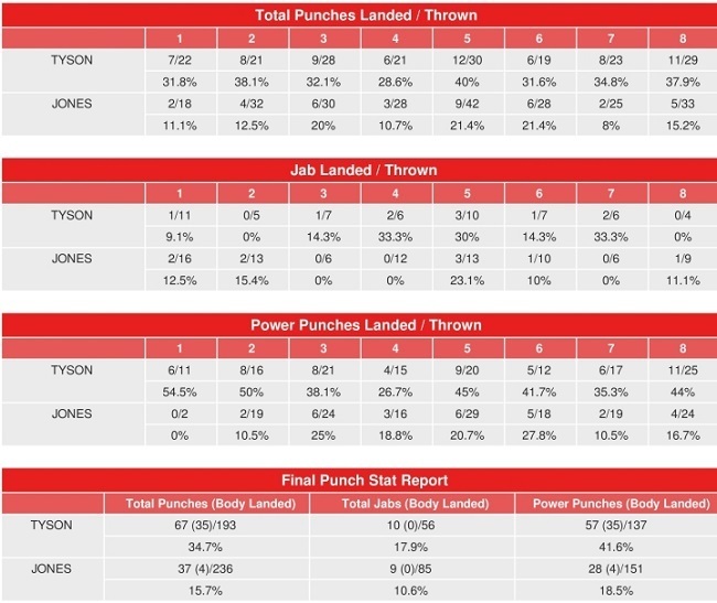Майк Тайсон - Рой Джонс: статистика ударов
