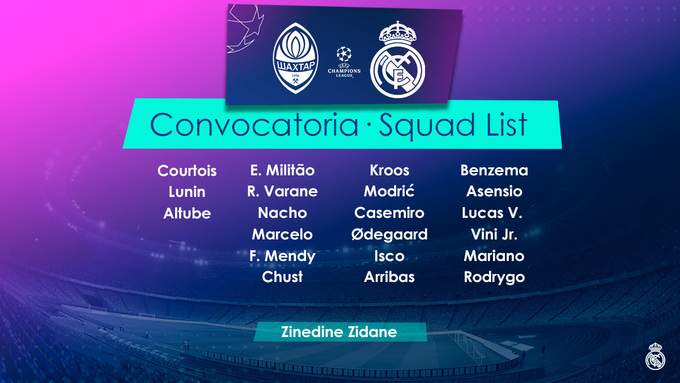 В целом на матч с «Шахтером» Зидан будет выбирать игроков из следующего списка: