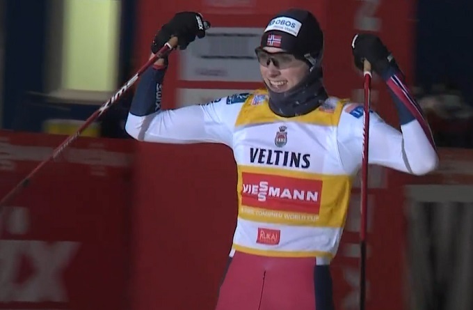 И в воскресенье утром эта бомба взорвалась: из-за сильного ветра прыжки отменили, и это означало, что Риибер на старт гонки не имел права выходить. Впрочем, еще до этого норвежский доминатор успел оформить две уверенные победы, и по итогам этапа в Руке остался лидером Кубка мира, даже несмотря на пропуск третьего старта. Ну а воспользоваться отсутствием Риибера сумел Офтебро, который одержал свою первую в карьере на Кубке мира.