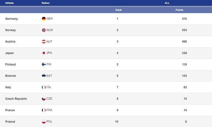 Большего ждали в Руке от сборной Германии, но работа с Хайнцем Куттином на трамплине пока что ожидаемых плодов не приносит. Да, немного прибавили Йоханнес Ридцек и Фабиан Риссле, но зато полностью провалил старт сезона Винценц Гайгер. Ощутимого прогресса на трамплине добился только Мануэль Файсст, который возглавил прыжковый зачет Кубка мира.