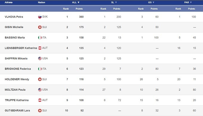 Микаэла Шиффрин, как и Мишель Гизин, старт в Австрии пропускали, что позволило Влховой уйти в отрыв в общем зачете Кубка мира. Словачка опережает Микаэлу уже на 235 очков. Даже если Шиффрин сумеет в ближайшее время вновь набрать свою лучшую форму, отыграть такое отставание будет очень тяжело – интриге в нынешнем сезоне Кубка мира точно быть.