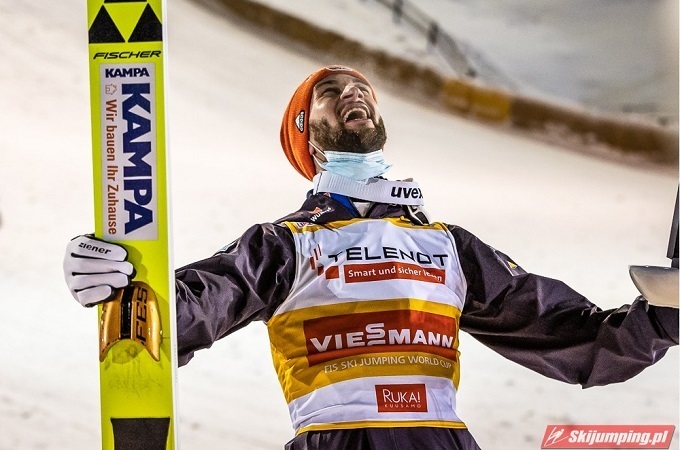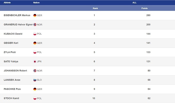 Больше всех от таких условий выиграл Халвор Эгнер Гранеруд. С самого начала нынешнего сезона норвежец показывал прекрасный уровень в тренировках, но в личных турнирах выступал чуть хуже, и дважды был вынужден довольствоваться четвертым местом. В воскресенье после первой попытки он также шел четвертым. Однако во втором раунде ему с ветром повезло намного больше, чем всем прямым конкурентам, и в итоге Гранеруд не только добрался до первого личного подиума на Кубке мира, но и сразу же одержал первую победу.