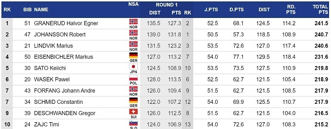 Норвежский прыгун Халвор Эгнер Гранеруд одержал третью подряд победу на Кубке мира. Компанию на подиуме ему составили партнеры по сборной Роберт Йоханссон и Мариус Линдвик.