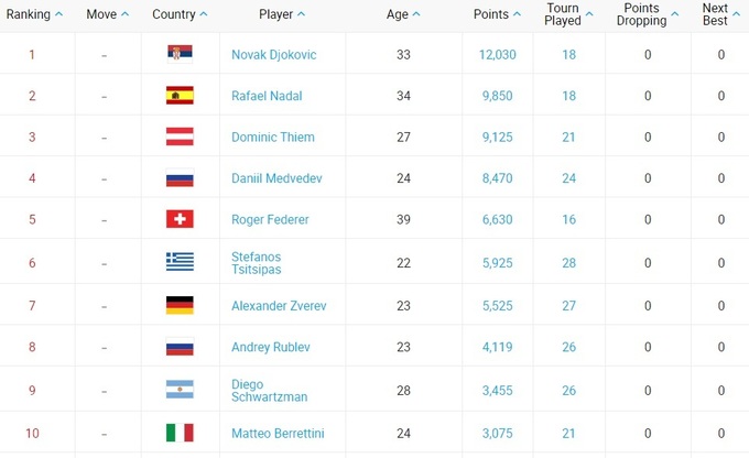 Рейтинг ATP. Калениченко поднялся на 17 позиций, Урсу – на 63