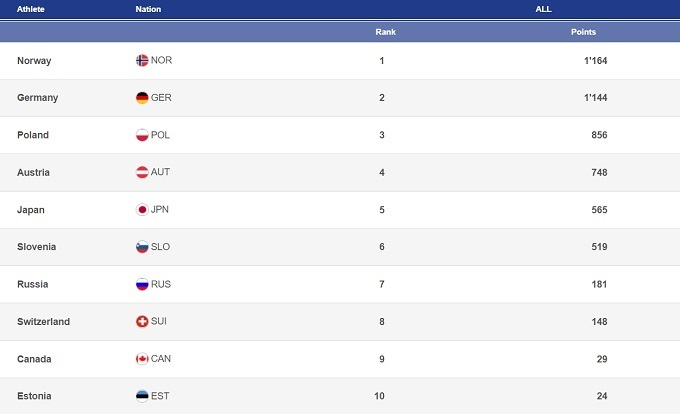 Выйти на третье место в общем зачете Йоханссону помогли не только собственные успехи, но и отсутствие многих грандов. Карл Гайгер не полетел в Нижний Тагил из-за того, что готовился стать отцом, а сборная Польши отправила в Россию резервный состав без Давида Кубацки, Камила Стоха и Пётра Жилы. И, стоит отметить, польский резерв выступил очень достойно. В последние годы поляков много и заслуженно критиковали за отсутствие прогресса резервного состава, однако в нынешнем сезона вторая команда сборной Польши очень прибавила. Об этом говорят цифры: в нынешнем сезоне уже 11 поляков набрали очки в общий зачет Кубка мира. Это является рекордом для сборной: ранее в сезоне 2012/2013 очки в Кубок мира набрали 10 разных представителей сборной Польши.
