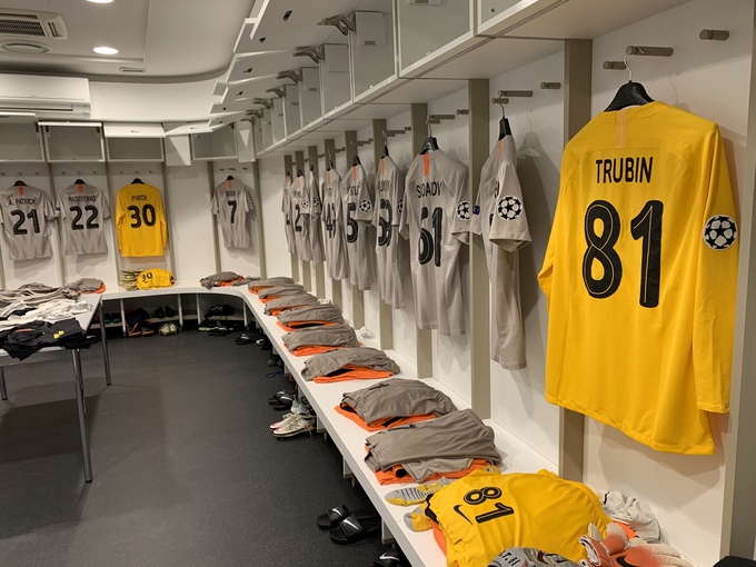 26 мин. После длинного заброса к штрафной Шахтера Трубин забрал мяч.