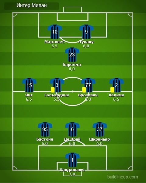 Замены «Интера»: Иван Перишич - 5,0; Алексис Санчес - 5,5; Данило Д'Амброзио - б/о; Маттео Дармиан - б/о; Кристиан Эриксен - б/о.