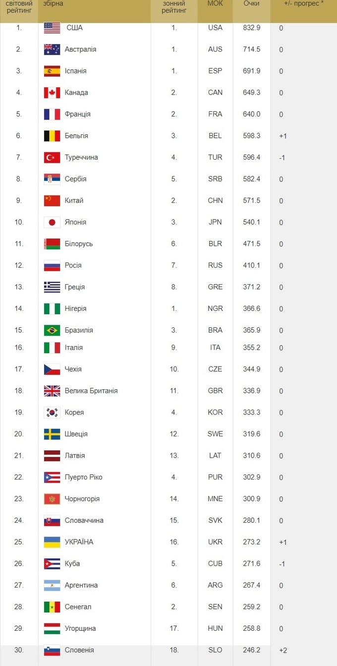 Возглавляют рейтинг женских сборных ФИБА США, Австралия, Испания.