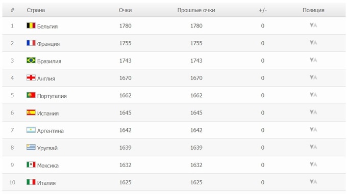 Топ-10 рейтинга ФИФА