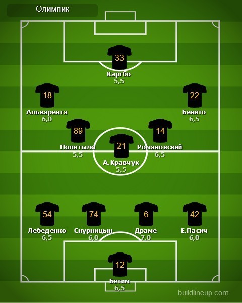 «Олимпик»: Бетим, Лебеденко, Снурницын, Драме, Е.Пасич, А.Кравчук, Политыло, Романовский (Аблитаров, 90), Альваренга (Тейшейра, 57), Бенито, Каргбо