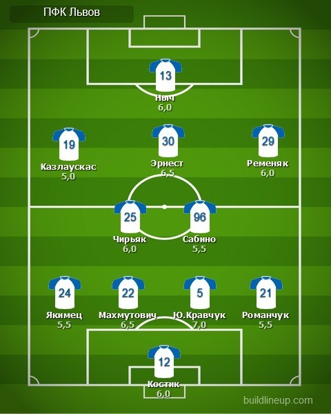 Замены «Львова»: Клименчук - 5,5; Айнсалу - 5,5; Кошман - б/о.
