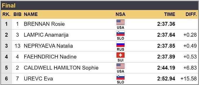 Американка Рози Бреннан выиграла спринт свободным стилем у женщин на этапе Кубка мира в швейцарском Давосе. В финале она опередила Анамарию Лампич и Наталью Непряеву.