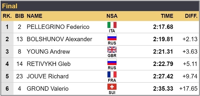 У мужчин победу одержал итальянец Федерико Пеллегрино, компанию на подиуме которому составили Александр Большунов и Эндрю Янг.