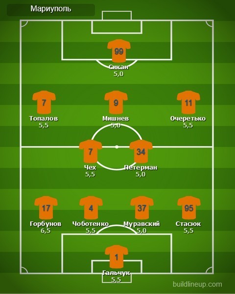 Замены «Мариуполя»: Андрей Кулаков - 5,0; Артем Бондаренко - 5,0; Вячеслав Велев - 5,5; Ярослав Доброхотов - б/о.