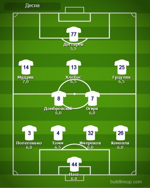 Замены «Десны»: Филипп Будковский - 7,0; Егор Картушов - 6,5; Леван Арвеладзе - 6,0; Сергей Старенький - б/о; Виталий Ермаков - б/о.