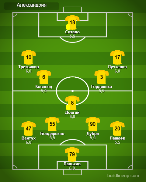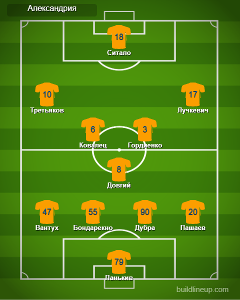 «Александрия»: Панькив - Пашаев, Дубра, Бондаренко, Вантух - Гордиенко (Бабогло, 80), Довгий (Стецьков, 46), Ковалец - Лучкевич (Устименко, 72), Ситало (Безбородько, 66), Третьяков (Шастал, 46).