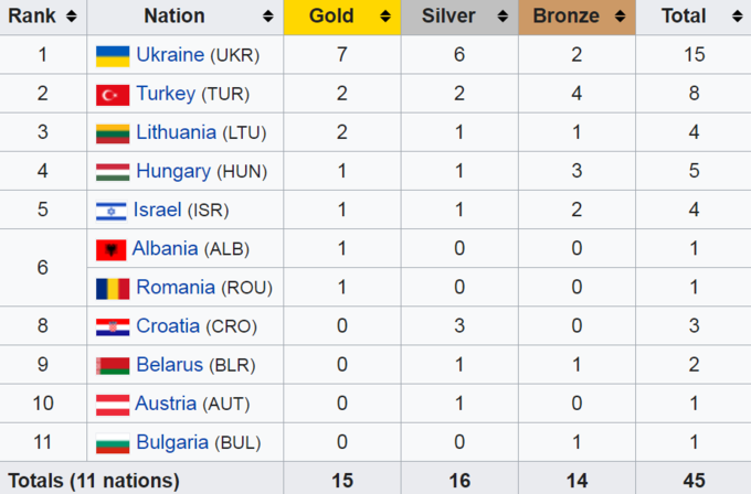 Благодаря успеху Ковтуна Украина более чем уверенно заняла первое место в общем медальном зачете. Для сравнения, Турция, занявшая второе место, наполнила командную копилку 8 медалями (два золота, две бронзы и четыре серебра).