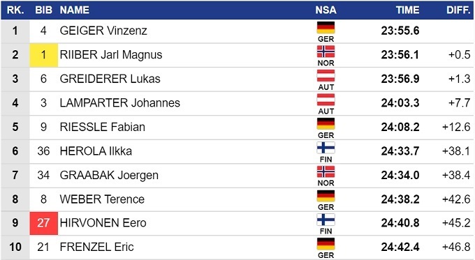 Двоеборье. Гайгер обыграл Риибера в Рамзау