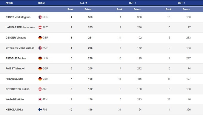 Однако и у немцев не все гладко: если Эрик Френцель держит свой уровень, а Фабиан Риссле снова готов попадать на подиумы, то Йоханнес Ридцек по-прежнему разочаровывает, и в Рамзау он ни разу не попал даже в топ-10: 12-е и 23-е места. Причиной столь слабых результатов Ридцека остаются проблемы на трамплине.