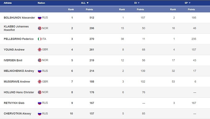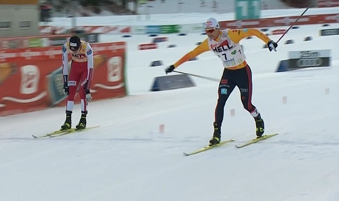Отсутствием Клэбо и неудачами француза в полной мере воспользовался Федерико Пеллегрино, который одержал две победы. Прошлый сезон для итальянца получился неудачным, однако сейчас он, похоже, возвращается на свой прежний уровень. Суммарно на его счету уже 15 побед на Кубке мира, при чем 14 из них – именно в коньковом спринте. Отметим также второе место Эндрю Янга, которое британец завоевал несмотря на то, что на старте финального забега сломал палку. В целом же Янг был готов бороться за победу с Пеллегрино.