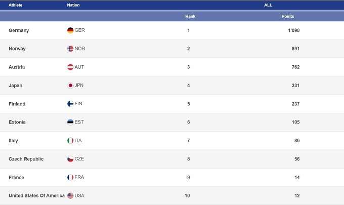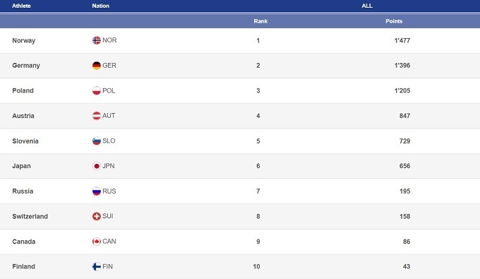 Не может записать себе в актив этап в Энгельберге и сборная Германии. Да, Маркус Айзенбихлер остается на топ уровне – четвертое и второе места. Тем не менее, в общем зачете Кубка мира немец продолжает отпускать все дальше Гранеруда, поэтому быть довольным своим выступлением в Швейцарии он вряд ли может. Стабилен Пьюс Пашке, который дважды финишировал в топ-6. Пашке уже несколько недель ходит на подступах к подиуму, и, если он сумеет продолжить в том же духе, то попадание в топ-3 – лишь вопрос времени.