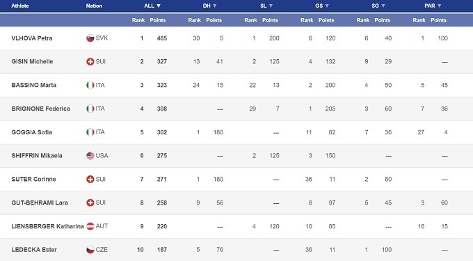 В общем зачете итальянка сейчас идет выше Сутер, и это не случайность. В отличие от швейцарки, Софья ходит и гигантский слалом, при чем постепенно возвращается в нем к своему лучшему уровню результатов: уже 2 попадания в топ-10 в трех стартах нынешнего сезона. Поэтому, даже при своей нестабильности Годжа имеет в общем зачете не меньше шансов, чем Сутер. А если итальянка сумеет наконец-то избавиться от постоянных ошибок на ровном месте, то Петре Влховой и компании может быть очень несладко.