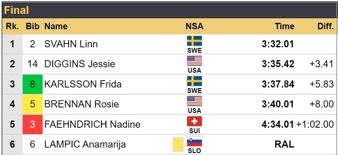 У женщин победу одержала шведка Линн Сван. Второй финишировала Анамария Лампич, однако словенку релегировали на последнее место финала из-за того, что она сбила Надин Фэндрих.
