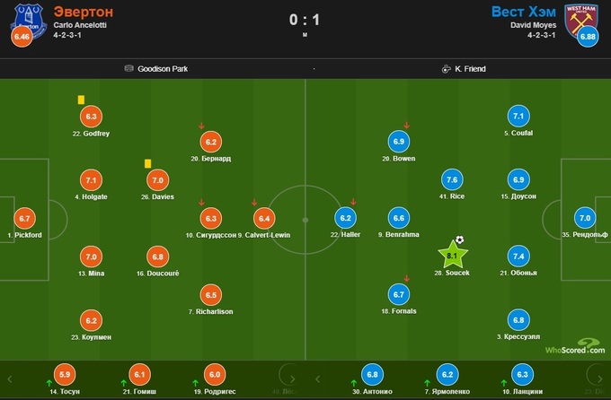 Среди всех игроков «Вест Хэма» хуже оценку получил только форвард Себастьян Алле (6.21). Лучшим в составе обеих команд стал автор единственного гола в матче Томаш Соучек (8.1).