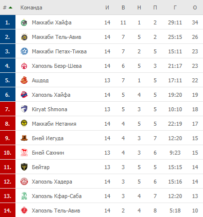 В матче 14-го тура чемпионата Израиля «Маккаби» Петах-Тиква проиграл «Маккаби» Тель-Авив со счетом 0:1.