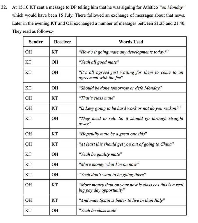 Регулирующая комиссия FA подвела итог: «Мы не согласны с тем, что эти сообщения были шуткой. В употребляемых словах нет ничего такого, что соответствовало бы шутке в обычном понимании этого слова. Цель сообщения совершенно ясна. Друг искал уверенности в том, что он должен сделать большую ставку на переход Триппьера в «Атлетико». И Триппьер сделал такие заверения. Нам кажется, что у нас нет другого выбора, кроме как сделать вывод: Триппьер знал, что друг сделает ставку на трансфер. Соответственно, апелляция отклонена».