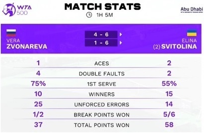 Первая ракетка Украины Элина Свитолина (№5 WTA) продолжит борьбу на турнире WTA 500 в Абу-Даби.