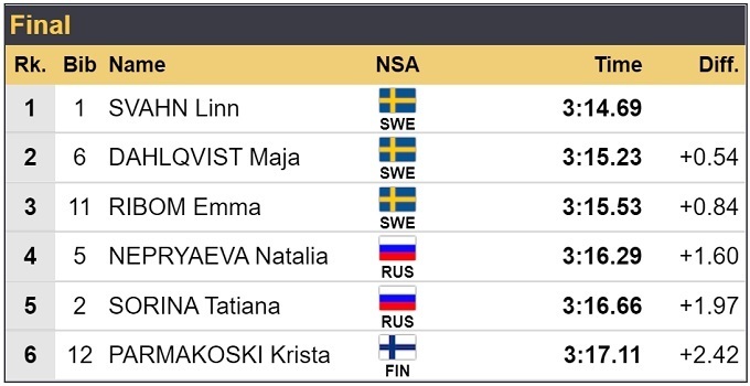 У женщин все три места на подиуме заняли представительницы Швеции. Победу одержала Линн Сван.