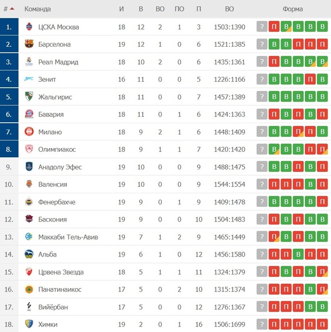 В рамках большого игрового дня состоялось 5 матчей Евролиги.